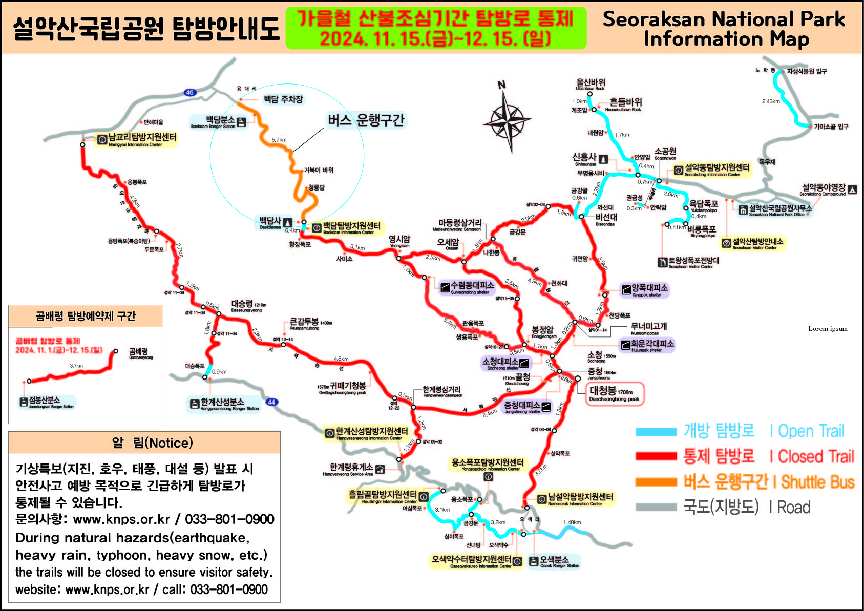 | 설악산 등산코스별 소요시간 정보, 등산지도, 날씨 확인방법 (0) | 2024.12.02 |